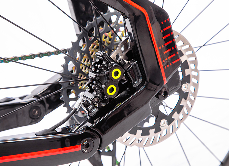 A new four link suspension system make internal routing with post mount break on soft tail bike become a reality.